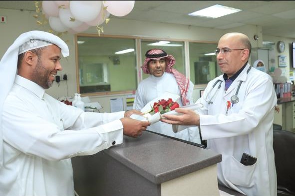 كما تم تقديم الهدايا والمعايدات للمرضى وكذلك الطاقم الطبي المناوب وسط مشاعر إنسانية عبر عنها المرضى والطاقم الطبي بالشكر والتقدير لهذه الزيارة.