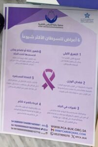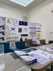 حيث قامت الجمعية بتوزيع منشورات تثقيفية عن سرطان الأطفال وأعراضه والوقاية منه ومنشورات عن الجمعية وأهدافها وبرامجها.